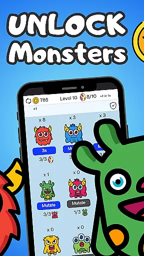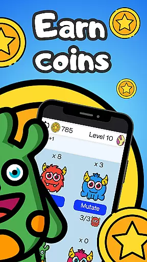 Monster Cash distinguishes itself through several key features that enhance the player's experience. The automatic egg generation system provides a steady stream of new monsters every 10 seconds, accelerating as players progress through levels. This feature ensures constant engagement without requiring continuous active play, making it ideal for modern mobile gamers.