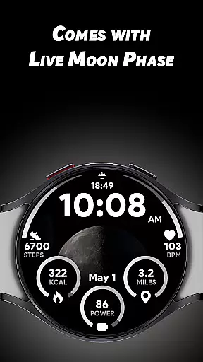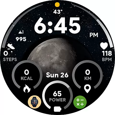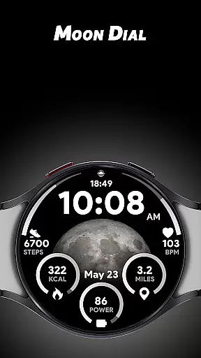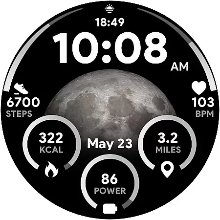 Moon Dial is a feature-rich watch face designed for Wear OS devices, offering users essential information at a glance. The standout feature is the live Moon Phase display, allowing users to quickly check the current phase of the moon. This functionality is particularly useful for those interested in astronomy or simply curious about the night sky.