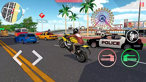 With a wide selection of motorcycles to choose from, players can experience different types of bikes, from high-speed road racers to rugged off-road machines. The game also features time trials and radar tests, adding layers of excitement and competition. Whether you're into performing stunts or simply cruising through diverse environments like cities, ports, and industrial zones, this simulator provides endless entertainment.