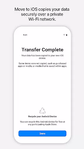 The app creates a private Wi-Fi network between devices, ensuring a direct and secure connection without the need for third-party storage solutions. With an intuitive interface and straightforward setup process, Move to iOS makes device migration effortless while maintaining data integrity throughout the transfer process.