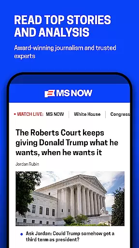 Beyond video content, the app features insightful commentary from award-winning journalists and trusted experts, ensuring you understand the context behind today's news stories. Whether it's politics, government affairs, pop culture, or current events, MS NOW keeps you informed with perspectives that matter.