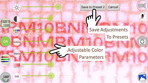 MScopesPro stands out with its comprehensive feature set tailored for enhancing USB camera usability. The app supports both jpeg and png image formats and offers multiple preview sizes ranging from 640x480 to 1600x1200, ensuring high-quality visuals. Users can adjust critical color parameters including brightness, contrast, hue, gamma, sharpness, saturation, and white balance, with the option to save these settings into three presets for convenience.