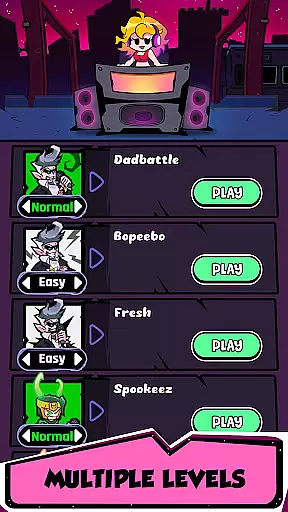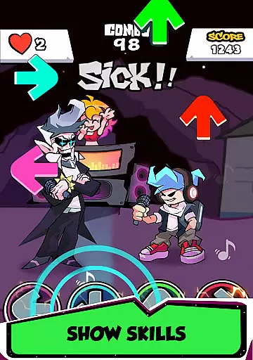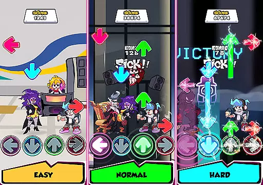 Music Night Battle is an engaging music rhythm game that brings the thrill of Friday Night Funkin' (FNF) to your fingertips. The core gameplay revolves around tapping colored arrows in sync with catchy tunes, challenging both your timing and multitasking skills.