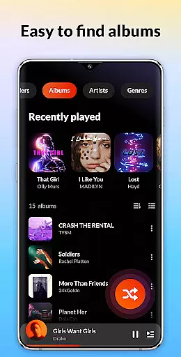 DDMusic distinguishes itself through its comprehensive feature set tailored for music enthusiasts. The app's deep scanning capability automatically refreshes your music library and filters tracks by duration and size. Its powerful organization tools allow you to browse and manage music through various categories including playlists, folders, albums, artists, and genres.