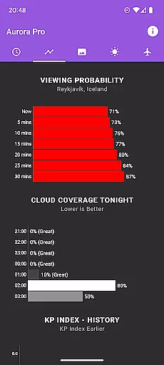 The app's forecasting capabilities extend from the next hour up to several weeks in advance. This allows users to plan their aurora viewing experiences with confidence, knowing they have a trustworthy prediction of when and where the Northern Lights will be visible. By offering high-resolution sun imagery and live aurora webcams, the app further enhances the credibility of its forecasts.