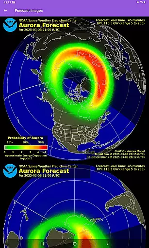 One of the standout features of My Aurora Forecast Pro is its comprehensive forecasting system. The app provides aurora predictions for the next hour, several hours, and even weeks in advance, allowing users to plan their viewing activities effectively. It also includes a global aurora map based on SWPC ovation forecasts, showing auroral activity strength across different regions.