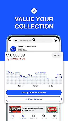 In addition to its core functionality, the app provides users with a guide value for each comic, offering insights into the potential worth of their collection. This valuation feature is particularly useful for those interested in selling or trading their comics or simply keeping track of their investment.