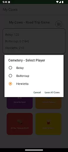 The game builds upon the classic road trip tradition of cow counting but elevates it with strategic elements. Players can encounter various game-changing opportunities such as doubling their score through marriage venues, protecting their herd by banking at McDonald's locations, or even sabotaging opponents' progress when spotting hospitals or cemeteries. These mechanics add layers of strategy without complicating the core experience.