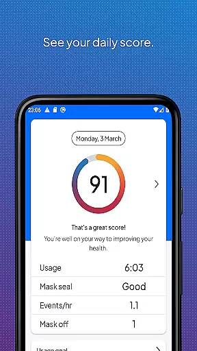 myAir offers an intuitive setup process to connect with your therapy device. Once paired, users can access their nightly sleep therapy data directly through the app. This includes detailed metrics and a nightly myAir score, providing a comprehensive overview of therapy effectiveness.