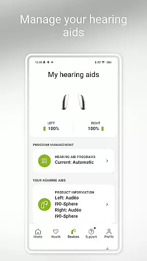 Another significant feature is Remote Support, which facilitates direct communication with hearing care professionals via live video calls. During these sessions, professionals can remotely adjust hearing aid settings, ensuring optimal performance without requiring in-person visits. Additionally, the Health section provides valuable insights into physical activity, offering metrics such as steps taken, wearing time, heart rate, and distance traveled, depending on the connected device's capabilities.
