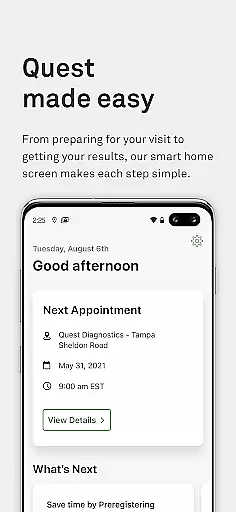 MyQuest for Patients is a comprehensive medical application designed to help users take control of their health by providing easy access to lab results and healthcare management tools. With this app, you can view your lab results securely and quickly, find nearby Quest Diagnostics locations, and schedule appointments at your convenience.