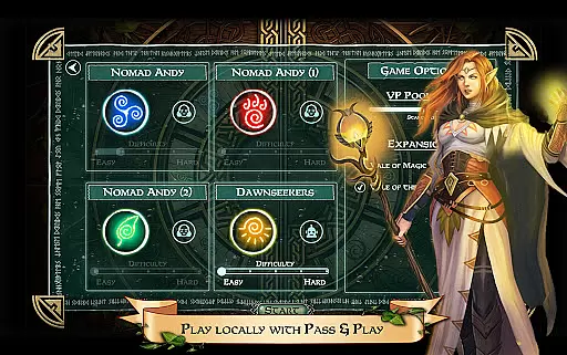 Set in a beautifully rendered fantasy world, Mystic Vale offers both single-player and pass-and-play multiplayer modes, making it ideal for local gaming sessions with friends and family. With deep tactical gameplay, stunning visuals, and extensive replayability through expansions, this app provides an immersive experience for fans of strategic card games.