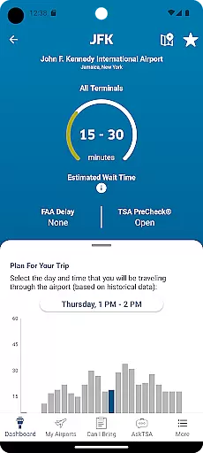 Another key feature is the ability to check historical airport traffic patterns based on travel dates and times, helping users plan their trips efficiently. Crowd-sourced TSA checkpoint wait times offer transparency and aid in decision-making. Furthermore, users can contribute by reporting current wait times directly from airports, enhancing community-driven data accuracy.