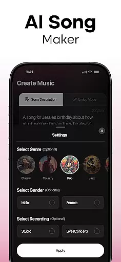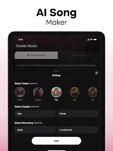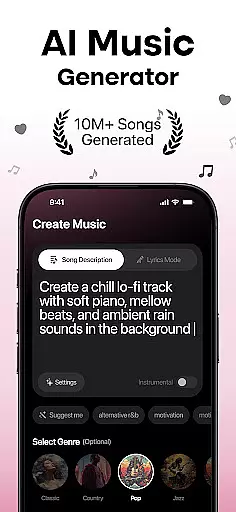 MyTunes distinguishes itself through an impressive array of innovative features designed to streamline music creation. The app's flagship capability is its comprehensive song generation system, which incorporates multiple specialized generators for different music styles. Users can access dedicated tools for creating rap verses, pop melodies, and rock arrangements, each powered by sophisticated AI algorithms that ensure authentic-sounding results.