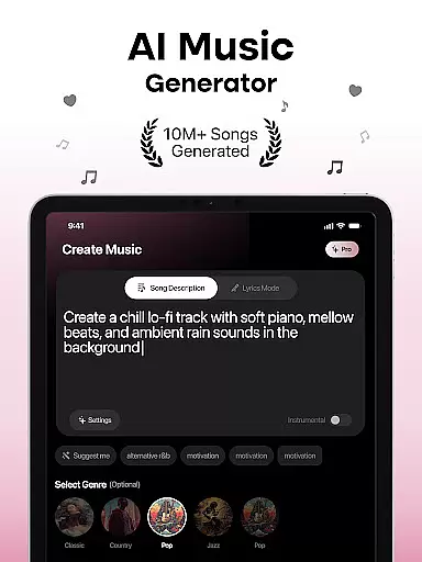 MyTunes is a revolutionary AI-powered music creation app that enables users to produce professional-quality tracks effortlessly. The application's core functionality lies in its advanced song generation capabilities, allowing users to create music across various genres including pop, rap, and rock through intuitive AI tools.