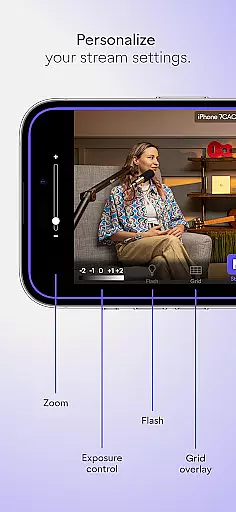 The app offers multiple features to enhance media sharing, including front and rear camera selection, pinchable zoom, autofocus, and an optional grid overlay. These tools provide users with the flexibility to capture and share video from diverse perspectives and angles, enriching live broadcasts and presentations.