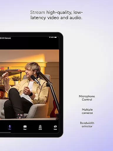 Additional functionalities include a tally light with multiple modes, front and rear camera selection, and an on-screen connection meter. These features collectively ensure that users can maintain high-quality broadcasts with real-time status updates. The optional grid overlay and adjustable bandwidth settings further enhance the streaming experience by offering customization options to fit various network conditions.