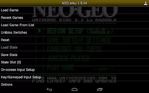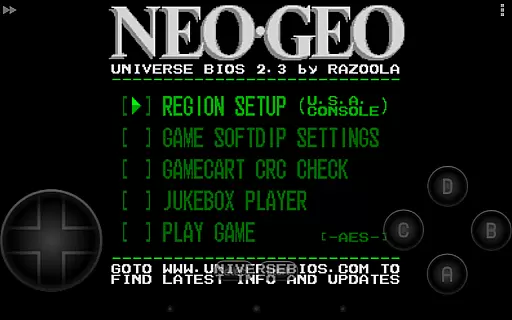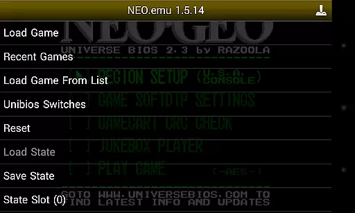 NEO.emu boasts several notable features that enhance the emulation experience. First, it supports the latest MAME sets and requires the neogeo.zip BIOS file for operation. The inclusion of Universe Bios allows users to easily adjust region and mode settings directly from the app menu, providing greater customization options.