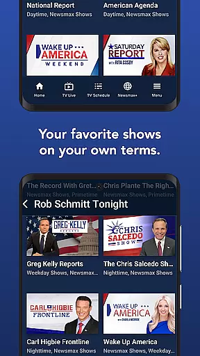 Unique offerings like "Rob Schmitt Tonight" and "Greta Van Susteren The Record" provide perspectives found nowhere else. Additionally, the app incorporates Newsmax2, a streaming channel delivering continuous news coverage and high-profile interviews. This combination of reliable journalism, diverse viewpoints, and exclusive content ensures users have access to a complete news experience tailored to their interests.