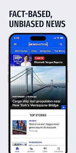 NewsNation is a fact-based news network that delivers unbiased local and national stories through its team of 5,400 journalists across the United States. The app provides users with access to live broadcasts such as Morning in America and NewsNation Prime, alongside on-demand video content for breaking news. With personalized weather forecasts and customizable push notifications, it ensures users stay informed about the news and weather that matter most to them.