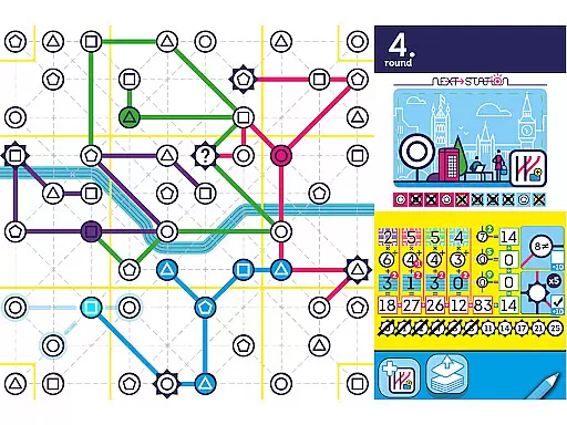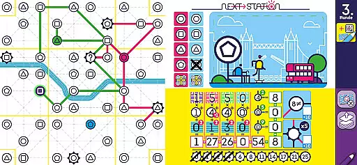 While primarily a Flip & Write game focused on player-driven content, the AI elements in Next Station - London serve as a backbone for generating varied challenges. The game employs algorithms to introduce randomness across its three different modes, simulating the unpredictability one might face when competing against human players.