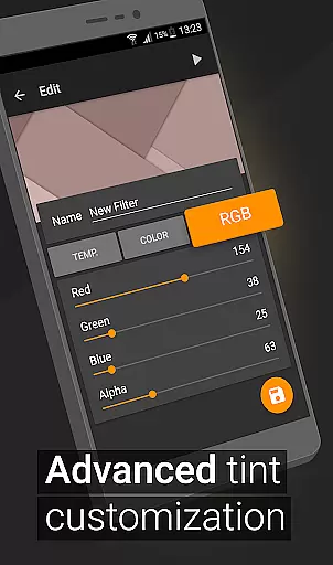 Night Shift distinguishes itself through its comprehensive set of features designed to optimize nighttime device usage. The app includes premade filters that provide instant protection against blue light, while also offering advanced customization options for more specific needs. Users can create unlimited personalized filters with precise control over color temperature, intensity, and RGB values.