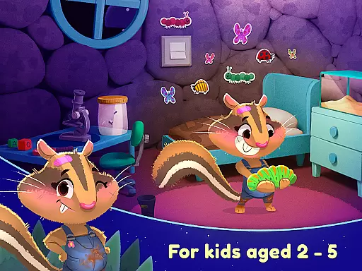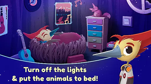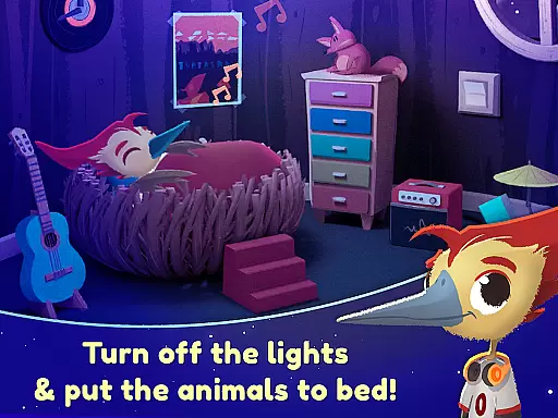 The app supports both touch and swipe gestures, making it intuitive for young children to interact with the characters and settings. These interactions include turning off lights for the animals and discovering hidden surprises, which enhance the overall user experience. Such features ensure that the app remains engaging and easy to use for its target age group of two to five-year-olds.