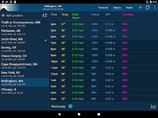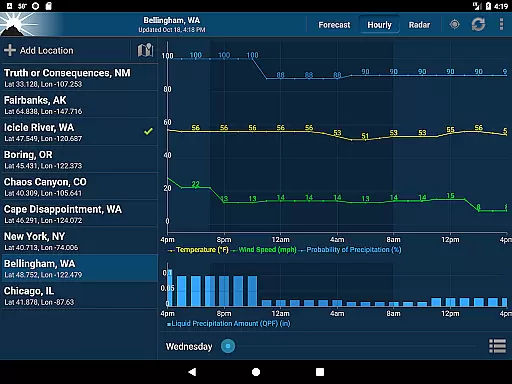 The app uses your GPS location to provide highly accurate forecasts tailored to your exact position. In cases where GPS is not available, it intelligently falls back on nearby cell towers and Wi-Fi networks to determine your location, ensuring minimal impact on battery life while maintaining forecast accuracy.
