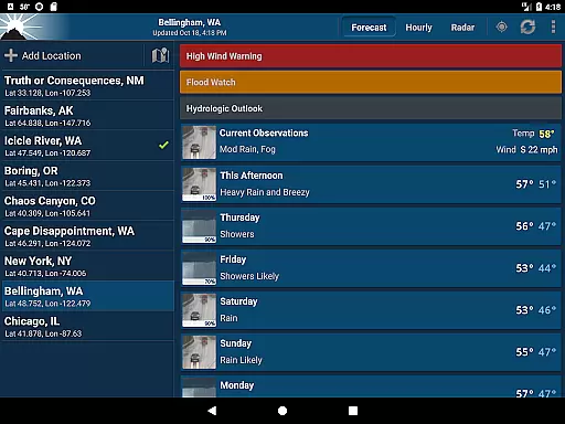 One of the standout features is its ability to display severe weather warnings prominently at the top of the forecast. While it doesn't support real-time alerts, its integration with NOAA ensures you receive critical updates through other channels. Additionally, customizable widgets allow users to view basic weather details on their home screen without opening the app, enhancing accessibility and convenience.