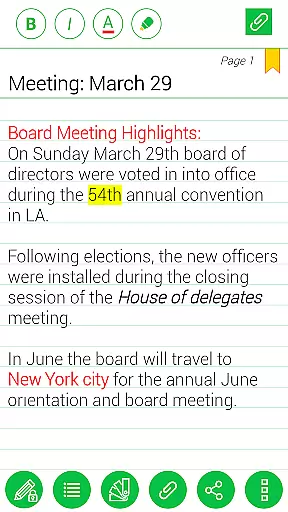 The app also allows users to attach image files, bookmark pages, and create freehand drawings, providing a rich multimedia experience. Custom fonts and themes for each notebook enable further personalization. Notebooks Pro supports exporting to PDF with attachments, applying text styles like bold, italics, and colored highlights, and backing up data to Google Drive. These features collectively ensure that Notebooks Pro stands out as a versatile and powerful note-taking solution.