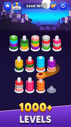 Nut Sort: Color Match Game stands out with its diverse range of features designed to provide an optimal gaming experience. The game includes thousands of levels, each offering unique color-matching challenges that grow progressively difficult, keeping players engaged over time.