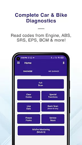 GaragePro is a comprehensive OBD scanning app designed for vehicle owners, repair shops, and DIY enthusiasts. It provides access to over 200 diagnostic functions across cars, bikes, and heavy vehicles, working seamlessly with most OBD2 scanners like ELM327. The app allows users to scan real-time data, retrieve trouble codes, and monitor crucial sensor datapoints from multiple vehicle systems such as Engine, ABS, SRS, and more.