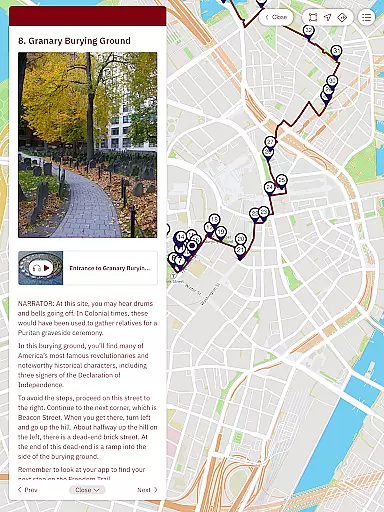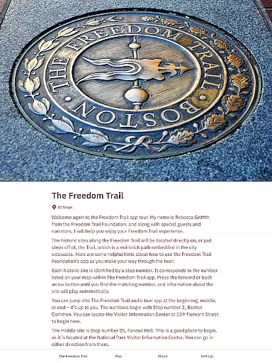 The Official Freedom Trail App offers an immersive historical experience, guiding users through Boston's 2.5-mile trail that connects 16 significant landmarks. This includes museums, churches, and parks, all pivotal in the American Revolution.