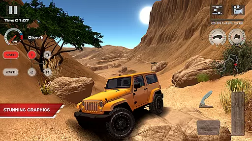 OffRoad Drive Desert stands out with its diverse range of features designed to provide a true-to-life off-road experience. The game includes 13 high-quality vehicles, each with realistic manual transmission, differential-lock systems, and multiple gear options. Players can choose from five different camera views, including near orbit, far orbit, internal, follow, and bumper cameras, allowing precise control over vehicle navigation. These features ensure that every drive feels as close to real-world off-roading as possible.