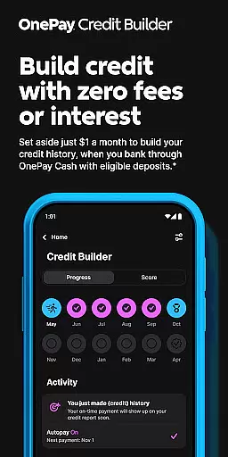 In addition to its rewards program, OnePay implements a Credit Builder Program designed to help users improve their credit scores responsibly. This feature allows users to make monthly payments toward a 12-month loan with a 0% APR, offering flexibility in payment amounts while maintaining structured financial discipline. Furthermore, the app includes valuable tools like Savings Backup and Fee-Free Overdraft protection, which work together to provide a safety net for eligible transactions.