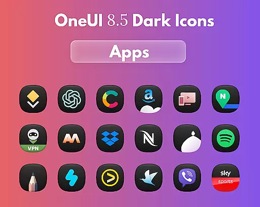 OneUi 8.5 Dark Icons stands out with its unique design elements. The icons are crafted with 3D lighting and smooth gradients, providing a visually pleasing experience. Inspired by One UI 8.5's dark theme, these icons bring a touch of elegance to any device.