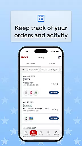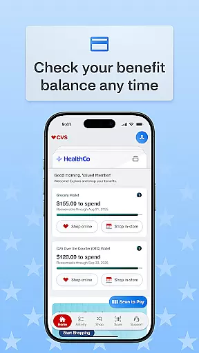 The app also offers features such as transaction history tracking, order status monitoring, and the ability to locate nearby CVS stores where benefits can be used in-store. Additionally, it supports multiple shopping options including CVS in-store purchases, online orders, and home delivery services, allowing users to shop on their own terms while maximizing their health benefits.
