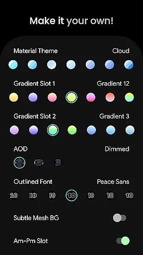 Among its standout capabilities are the unique selectable outlined Digital Clock fonts and true black background, which contribute to both visual appeal and battery efficiency. The app also includes high-resolution design elements, multiple material color themes, and three AOD styles that can be configured to optimize power consumption.