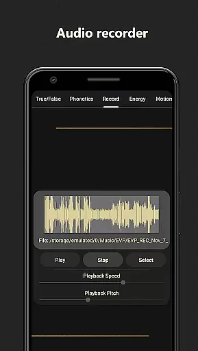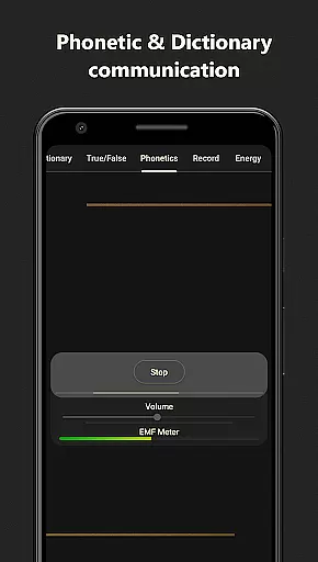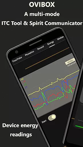 The Phonetic Mode forms speech using phonemes derived from environmental readings, with 12 alternating audio channels allowing for complex word formations. The Energy Mode visualizes real-time energy field fluctuations through dynamic graphs, while the Motion Mode detects vibrations using the device's accelerometer. Additionally, the EVP Recorder Mode enhances subtle audio changes, making it easier to capture clear EVPs with its specialized audio profile and visualizer.