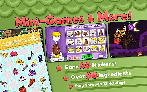 One of the unique features is the ability to unlock 12 separate holidays, each bringing new ingredients and recipes. Players can also earn and master 40 unique Special Recipes, adding depth to the gameplay. With over 95 ingredients and 7 exciting mini-games, there's always something new to discover. The inclusion of 109 unique customers ensures varied challenges and interactions.