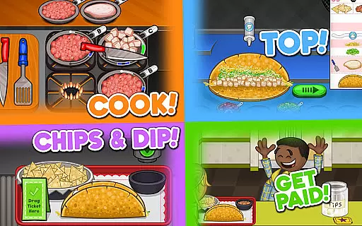 Papa's Taco Mia HD is a strategy game that immerses players in the vibrant world of taco crafting. As the proud new owner of a taco shop, you'll master the art of making delicious seasonal tacos and daily specials. The game challenges you to multitask across various stations, from cooking meats to assembling the perfect taco with an array of ingredients.