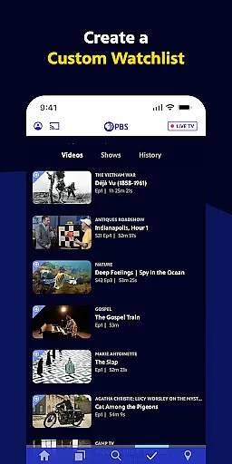 The app stands out through its unique combination of educational programming and entertainment. Users can enjoy live streams of their local PBS station, catch up on news programs like Frontline and PBS News Hour, or explore science and history through shows like NOVA and Finding Your Roots. The option to create a custom watchlist ensures you never miss your favorite episodes, while PBS Passport offers members extended access to an even larger library of acclaimed programming.