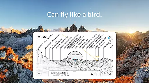 PeakFinder stands out with its comprehensive feature set tailored for mountain exploration. The app works entirely offline, providing access to over 1,000,000 peak names globally. Its real-time rendering displays surrounding landscapes within a 300km/200mil range, while the camera image overlays with panorama drawings on supported devices.