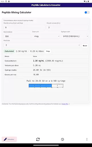 For professionals conducting peptide research, this app offers significant value by saving time and reducing calculation errors. Its intuitive interface and accurate results make it suitable for both beginners and experienced researchers who require exact measurements in their work.