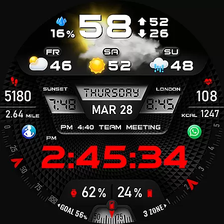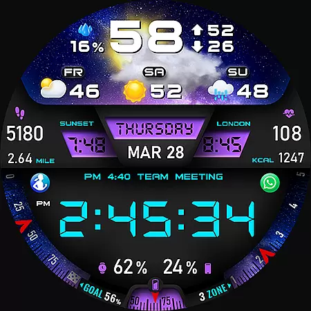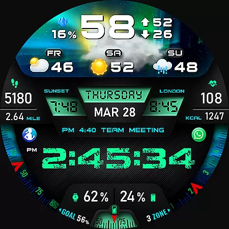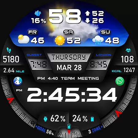 This watch face supports all Wear OS devices with API Level 34 and above, including popular models such as the Samsung Galaxy Watch series, Google Pixel Watch, Fossil Gen series, and Mobvoi TicWatch models. This extensive compatibility ensures that users with different devices can enjoy the same high-quality experience.