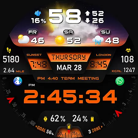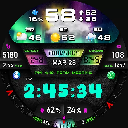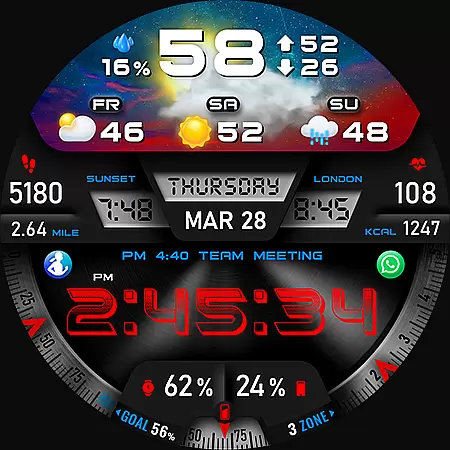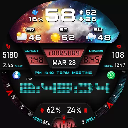 This application allows users to customize various aspects of their watch face, including weather data, time zones, and health metrics like heart rate and step count. By connecting to the companion app, users can effortlessly manage these settings, ensuring their watch face displays the most relevant information.
