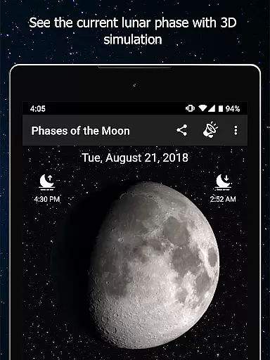 The app leverages NASA-generated 3-D simulations to depict the Moon's phases, providing a scientifically accurate representation that includes even the shadows' changes on the Moon's surface. This level of detail offers an authentic experience for those eager to follow the Moon's journey across the sky.