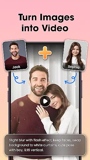Among its standout features is the AI Video Generator, which transforms static images into dynamic video content using pre-designed templates. The AI Hug and AI Kiss effects create emotional connections by generating realistic interactions between subjects in photos. Additionally, the AI Background Remover enables precise one-click background modifications, while the AI Photo Enhancer automatically optimizes image quality through intelligent analysis of lighting and detail.