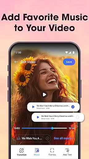 Photo Editor Video Maker Music is a versatile video editing application that allows users to transform their photos into engaging video stories. The app offers an AI Video Generator feature that can create stunning videos from simple images using various templates like AI Hug and AI Kiss. Users can enhance their creations by adding background music, stylish effects, frames, and custom text.