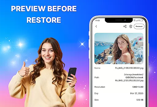 With an intuitive interface and advanced scanning technology, Photo Recovery, All Restore ensures fast and accurate results. It supports multiple file formats including JPG, PNG, MP4, PDF, DOCX, and ZIP, making it suitable for various user needs. The app's deep scan capability allows it to locate files even if they were deleted long ago.